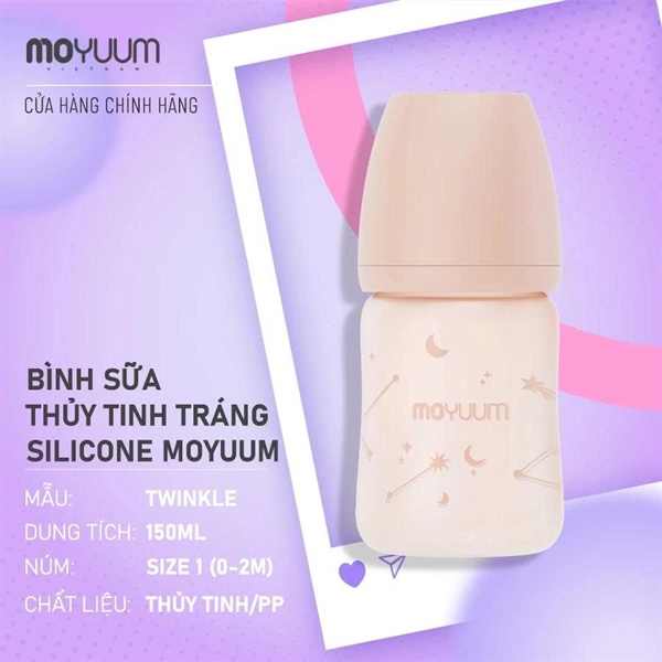 Bình Moyuum thủy tinh tráng Silicone Twinkle 150ml