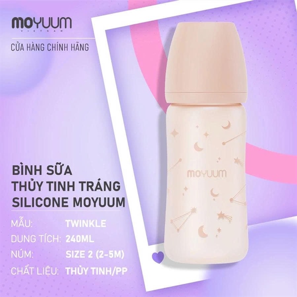 Bình Moyuum thủy tinh tráng Silicone Twinkle 240ml