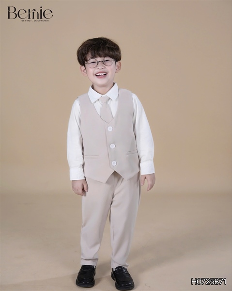 ⚜️ Thiết kế set vest 6 chi tiết hot hit: áo sơ mi trắng cổ đức, áo gile form chuẩn hàn cùng quần dài cùng bộ lịch lãm, ngoài ra còn đi kèm cavat và nơ cổ để bé có thể thay đổi phụ kiện đi kèm, tổng thể outfit lên dáng sang - xịn – mịn luôn ạ