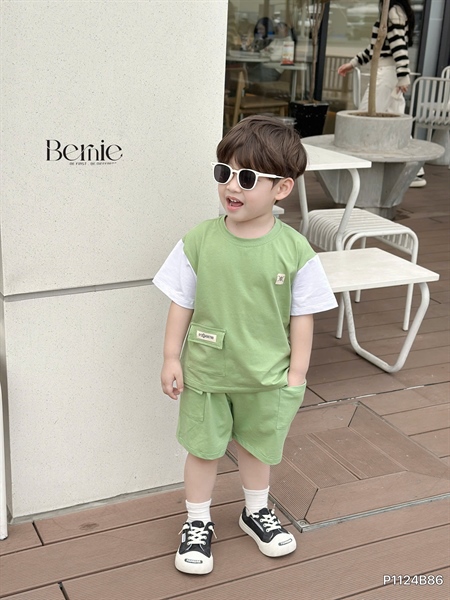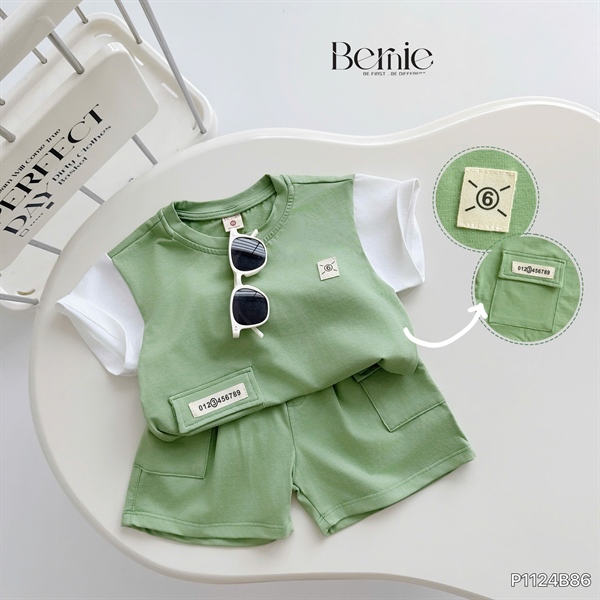 🎯 Thiết kế áo may túi nổi đính tag nắp túi, tag ngực độc đáo kết hợp cùng quần short mát mẻ, tay áo phối màu đẹp mắt
