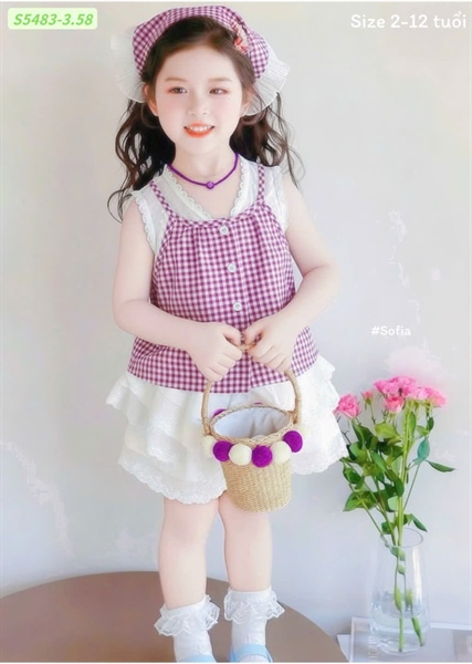 BG653 - 02/12 Set áo SN caro quần bèo tầng