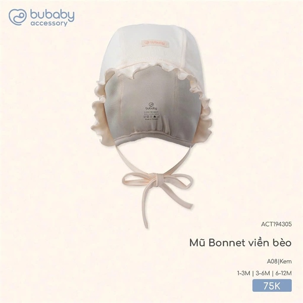 CT1943 - 3M/12M Mũ Bonnet viền bèo Bubaby