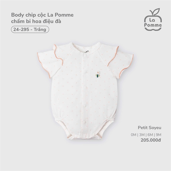 24295 - 9M/12M Body chip cộc La Pomme chấm bi hoa điệu đà Trắng