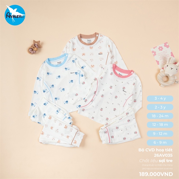 AV035 - 9M/3Y Bộ dài cài vai HT viền xanh/nâu/hồng
