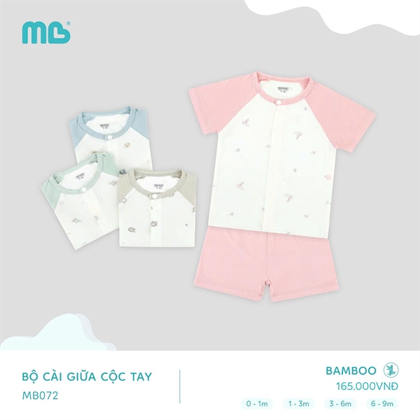 MB072 - NB/9M Bộ cài giữa cộc tay Bamboo Thỏ/Gấu/Xanh/Nâu