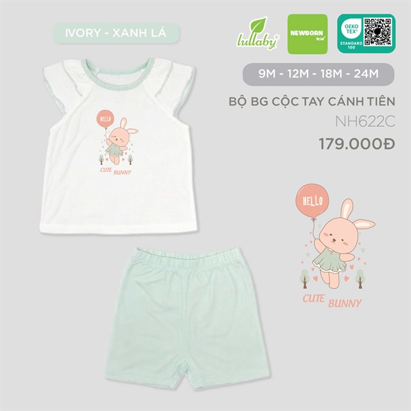 NH622C - 9M/24M Bộ BG cộc tay Ivory Xanh lá