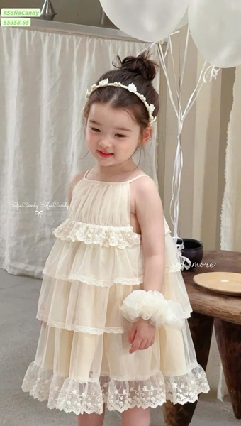 V0526 - 90/130 Đầm xoè lưới ren tầng
