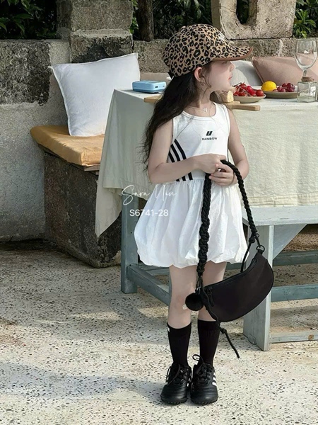 V0554 - 110/150 Đầm xòe 2 dây gấu thỏ