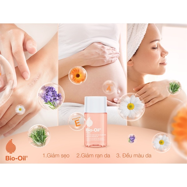 - Bio-Oil® là sự kết hợp các chiết xuất từ thực vật (tinh dầu cúc Xuxi, oải hương, hương thảo, cúc La Mã) và các vitamin hiệp đồng dưỡng da, làm đều màu da, giúp mờ sẹo và giảm vết rạn hiệu quả.
