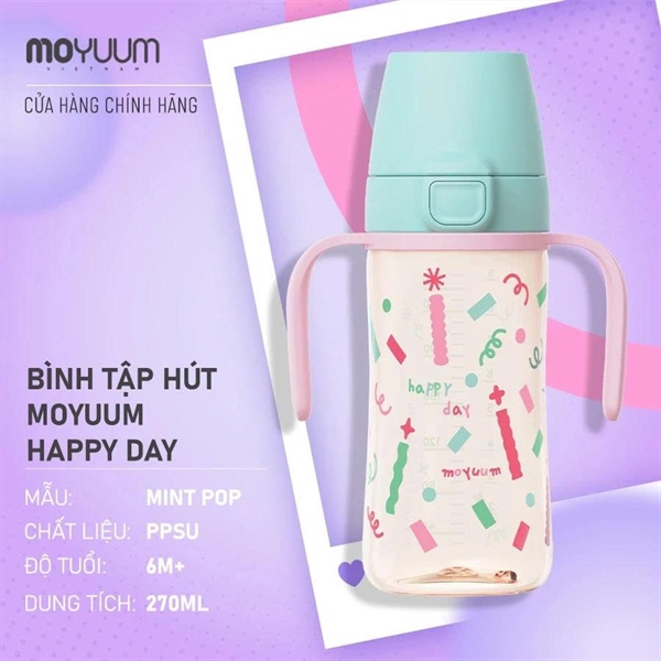 Bình nước Moyuum PPSU Happy day nắp hồng 270ml