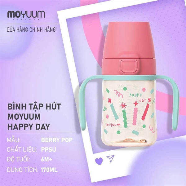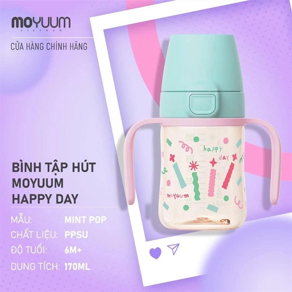Bình nước Moyuum PPSU Happy day nắp hồng 170ml