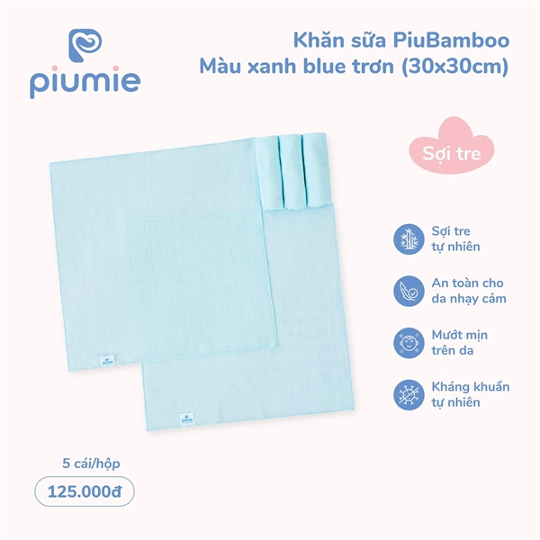 Khăn sữa sợi tre màu xanh Blue trơn Piumie 30*30