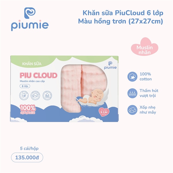 Khăn sữa muslin nhăn 6 lớp hồng trơn Piumie 27*27