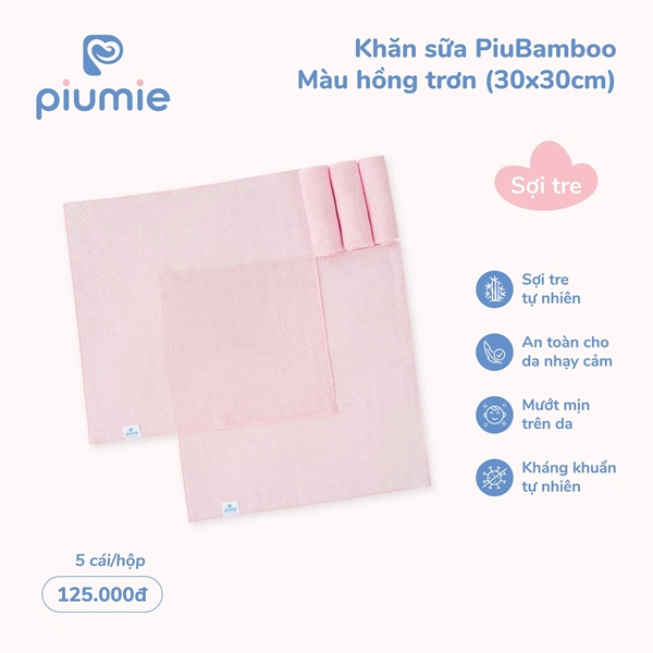Khăn sữa sợi tre màu hồng trơn Piumie 30*30