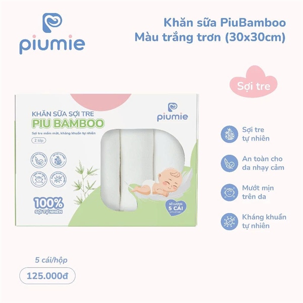 Khăn sữa sợi tre màu trắng trơn Piumie 30*30