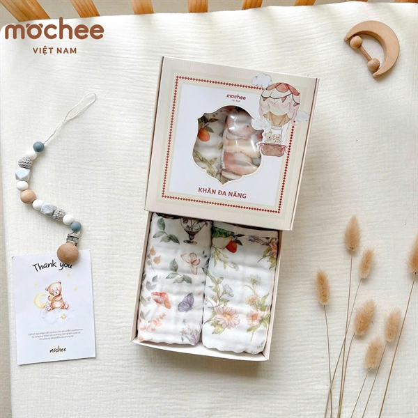 Hộp 2 khăn đa năng cotton hoạ tiết cổ tích Mochee 25*50 - Hộp