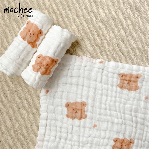 - Khăn sữa Mochee kích thước 25x25cm nhỏ gọn.