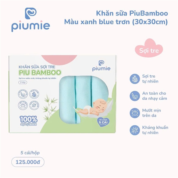 Khăn sữa sợi tre màu xanh Blue trơn Piumie 30*30 - Cái
