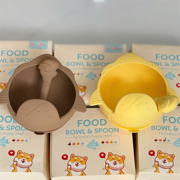 QT101 - Set chén muỗng Silicon hình cá Shiba