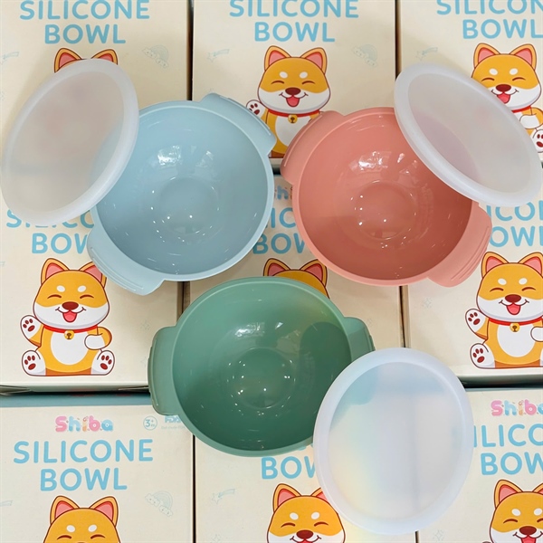 QT103 - Bái ăn dặm silicone có nắp đậy đế hít Shiba