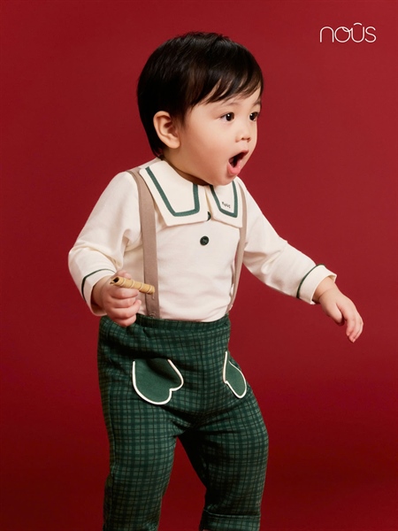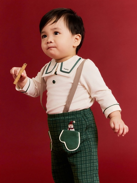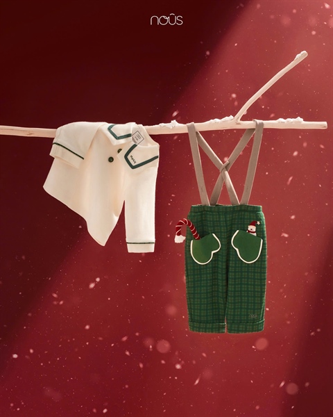 NS2500 - 3M/9M Quần yếm ca rô xanh lá thêu người tuyết kèm áo dài tay