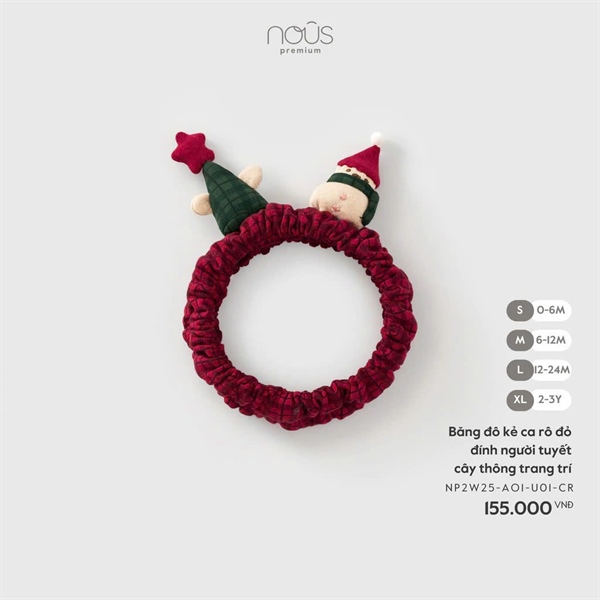 NS2500 - S/XL Băng đô kẻ ca rô đính người tuyết cây thông trang trí
