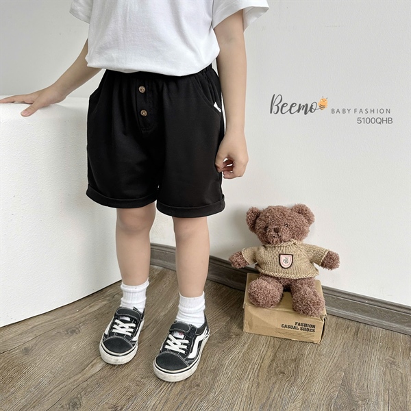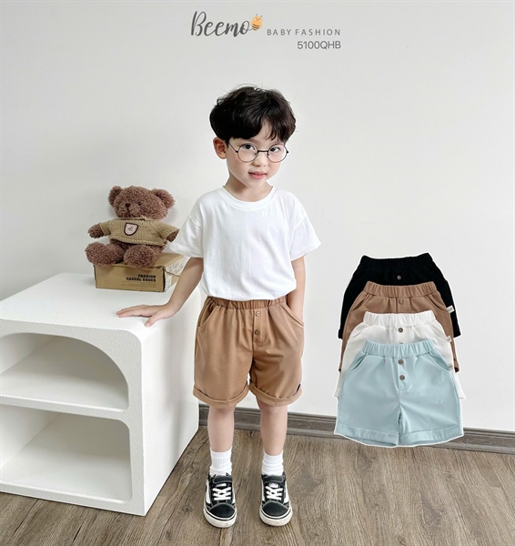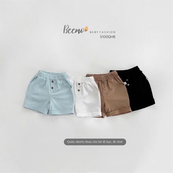 🌴 Thiết kế quần shorts lưng thun co giãn, phối khuy style hàn basic, gập gấu xinh yêu
