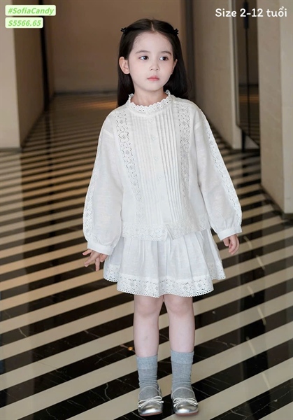 BG594 - 02/12 Set áo dài tay phối ren cv