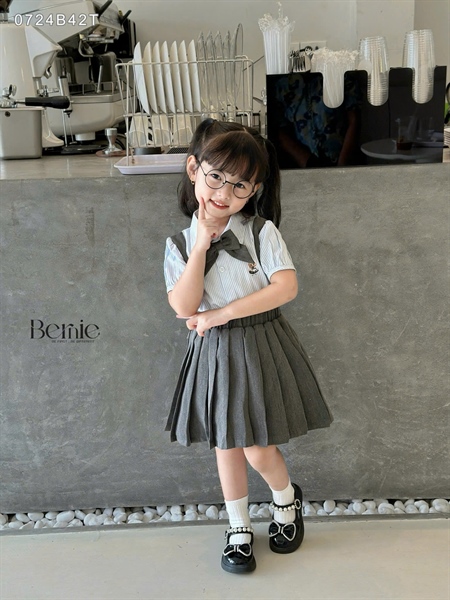 BG599 - 90/140 Set sơ mi nơ cv xếp ly