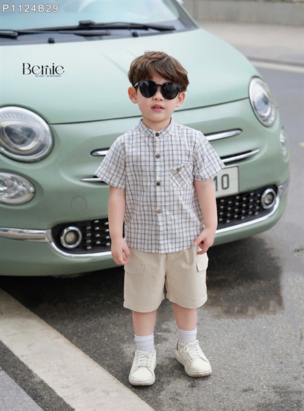 BT661 - 80/140 Set sơ mi kẻ in cáo
