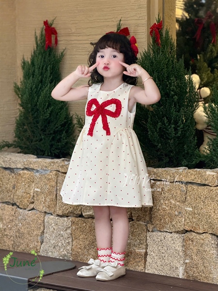 V0557 - 01/10 Đầm xòe SN chấm bi nơ